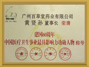 董事長黃賢孫 建國60周年中國醫(yī)療衛(wèi)生事業(yè)最具影響力功勛人物
